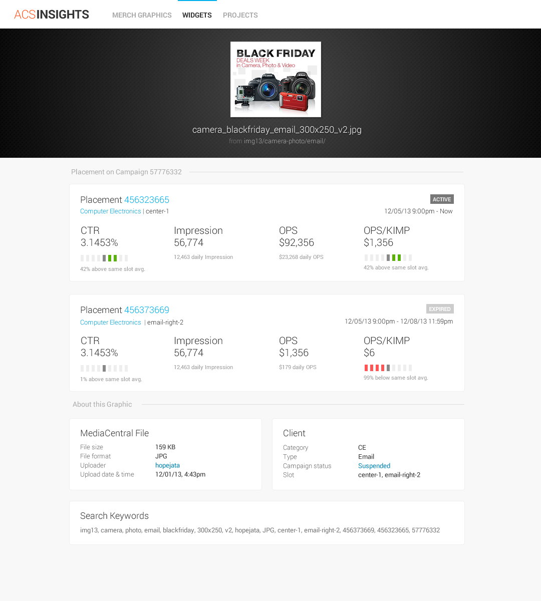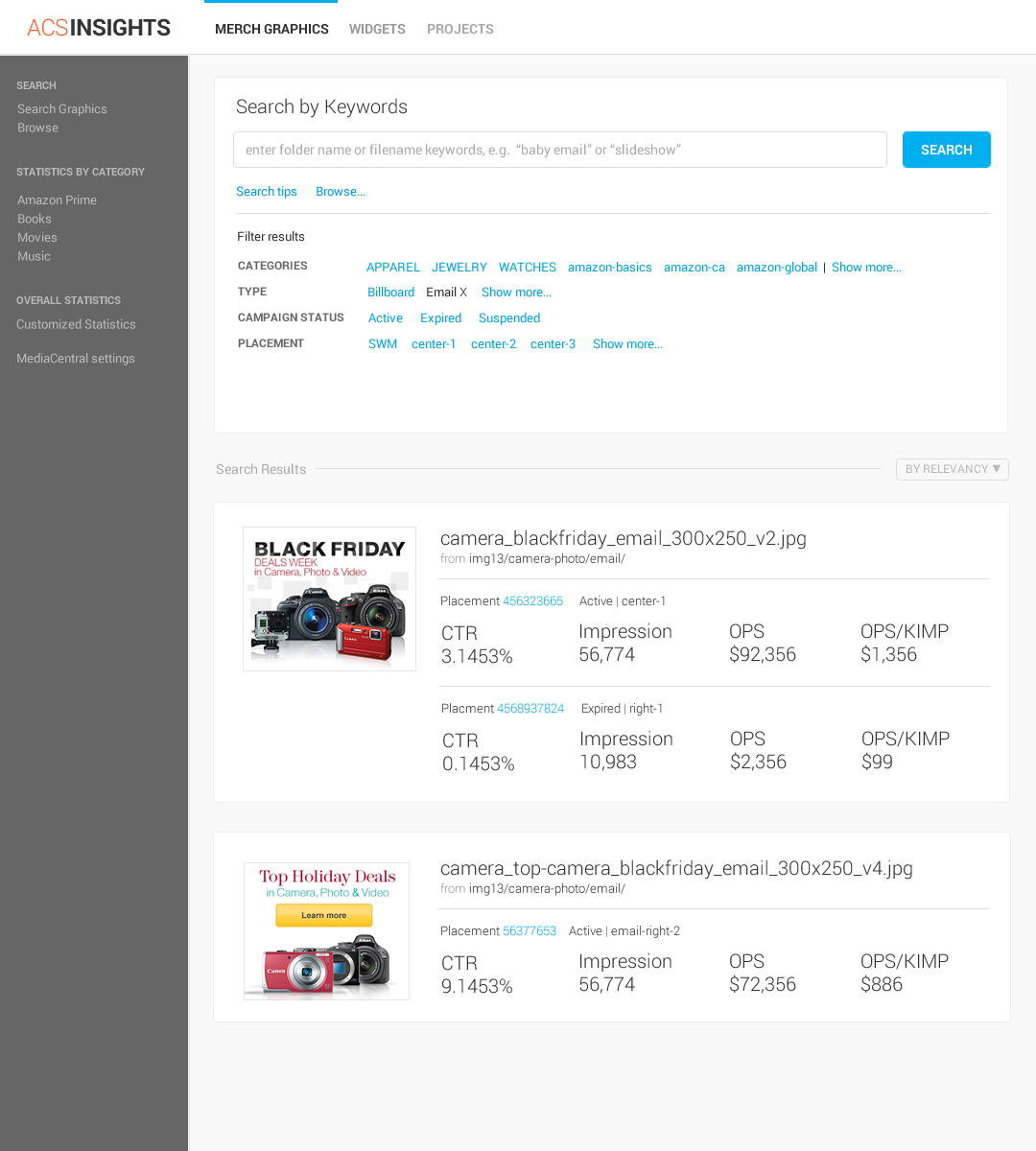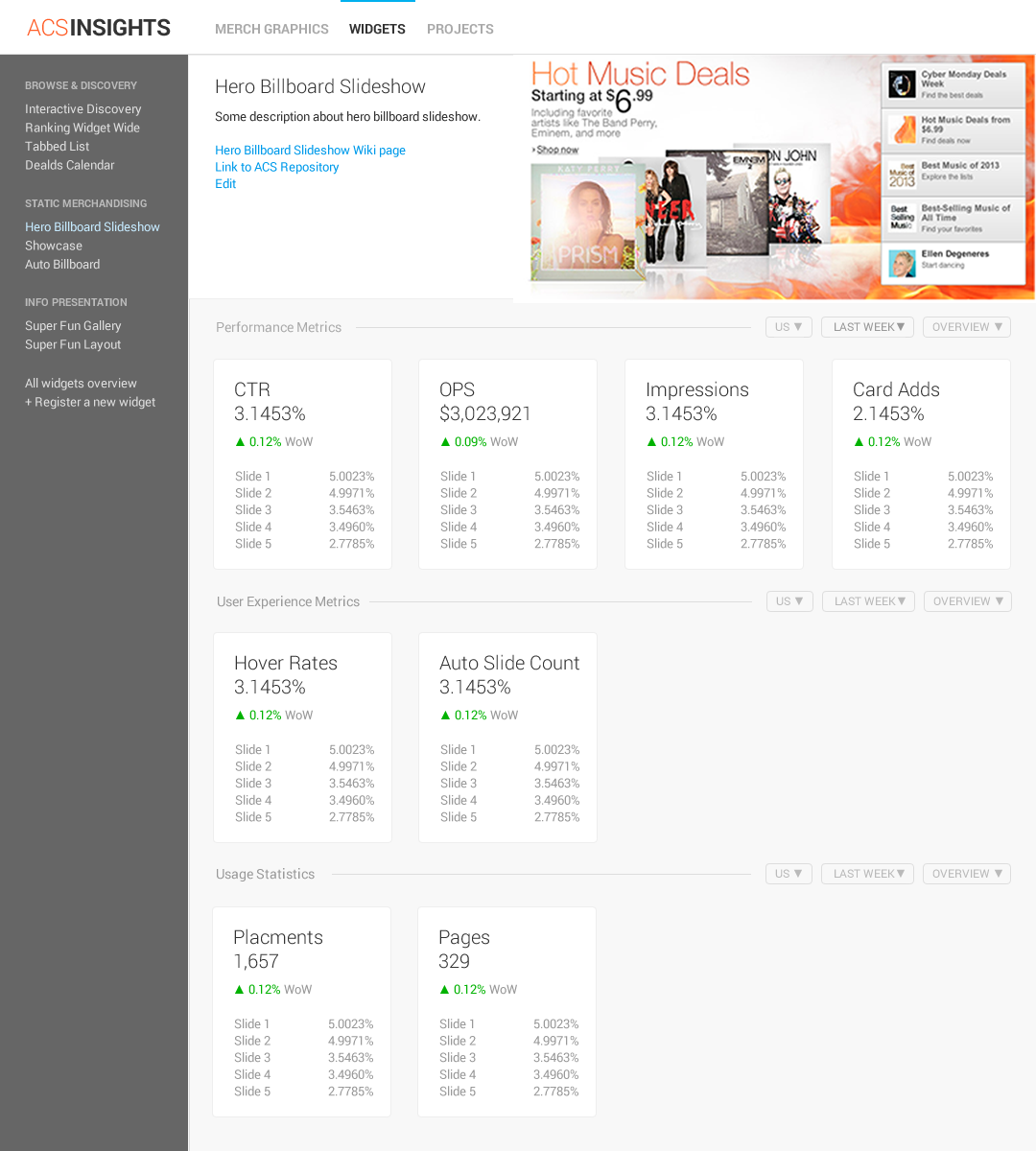 ACS Insights is a highly automated application that will pull performance metrics directly from Amazon data sources and present them, allowing us to easily analyze and understand the impact of our work on the business.